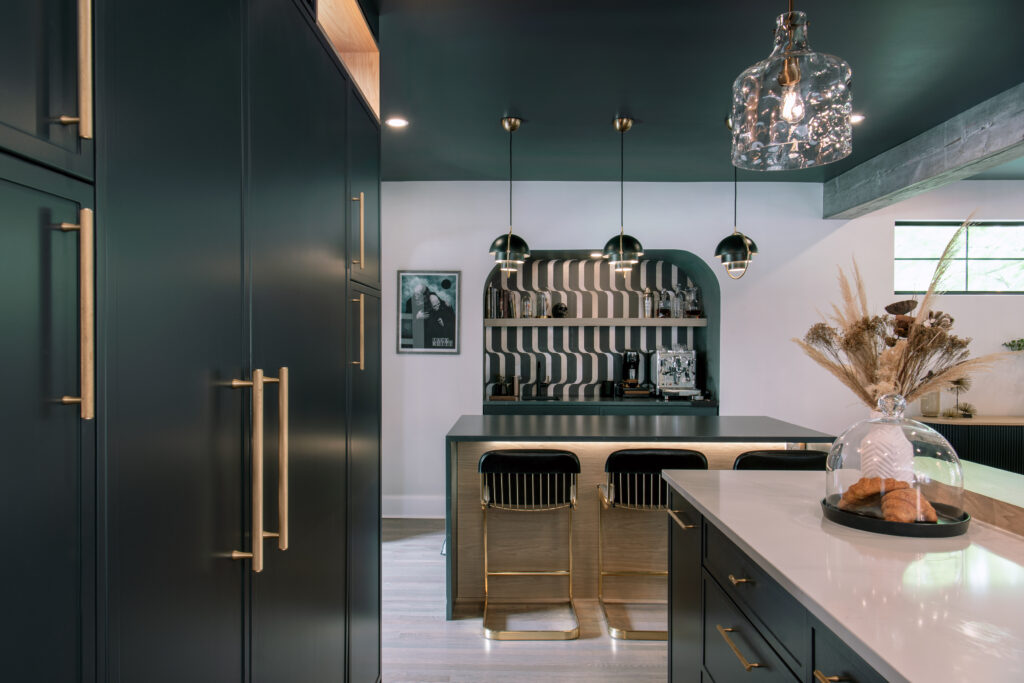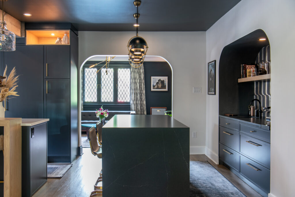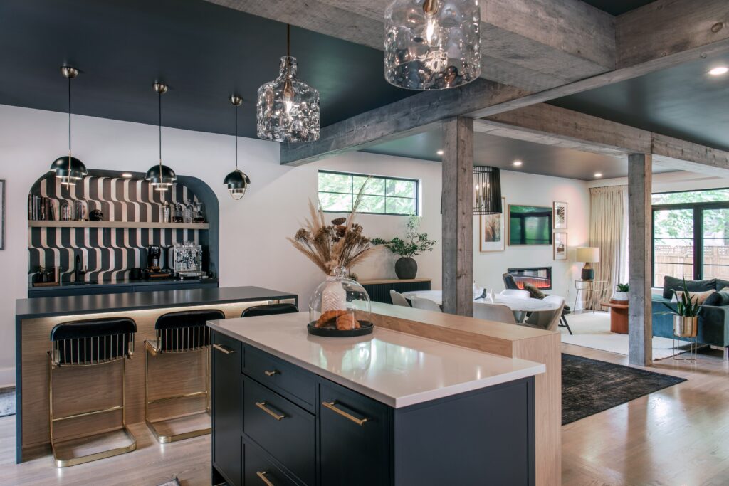 One of the standout features of this renovation is the two kitchen islands. These islands offer both efficiency and flexibility, allowing for multiple uses. One island has been designated as a specialty bar/coffee area, perfect for the homeowner who is an amateur barista/mixologist, while the other is used as the primary food prep station. This clever use of space ensures that the kitchen remains a central hub of activity, while providing the flexibility to accommodate a wide variety of uses.