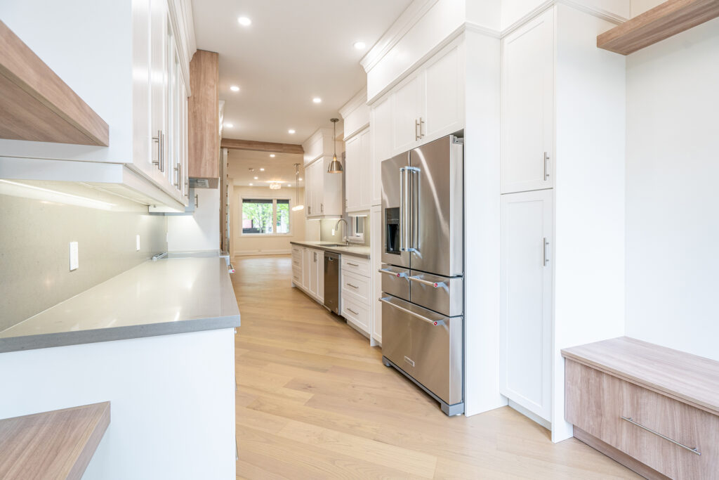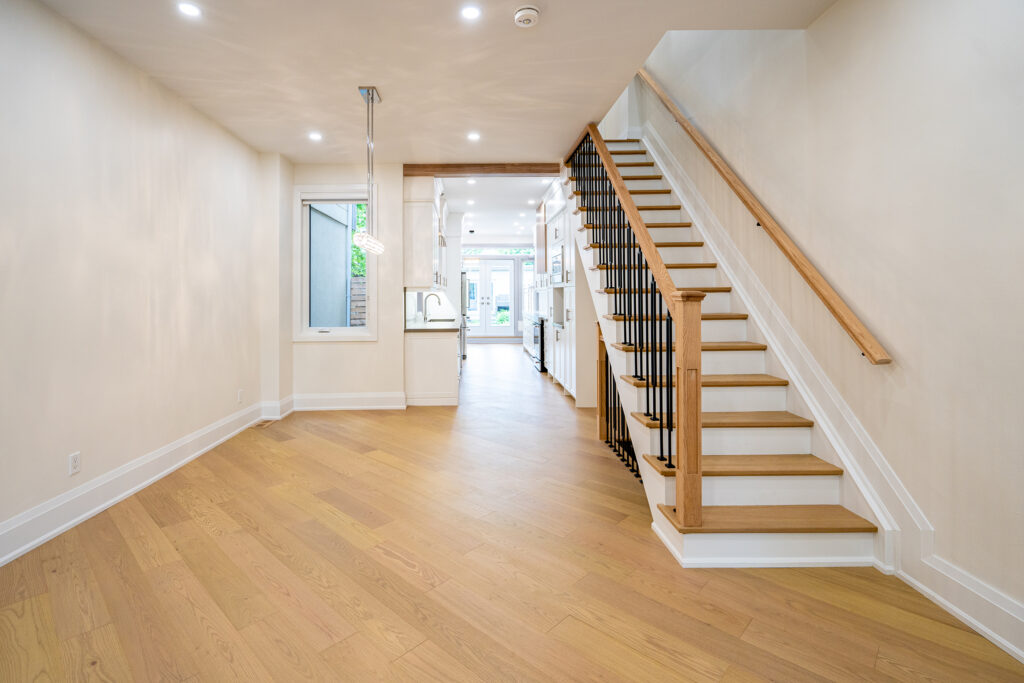 The most challenging part was working by code on a structurally challenged property. The old joists were damaged and had lost their integral functionality. The main floor existing extension was completely gutted, and all joists were replaced to create a structurally safe home.