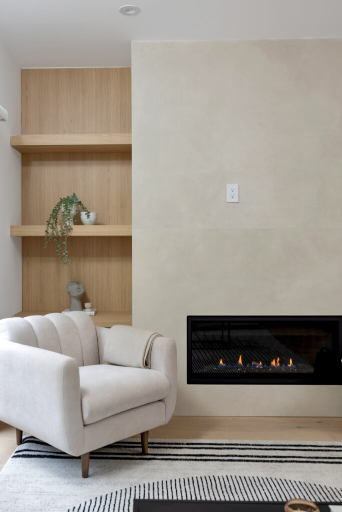 The original floor plan had an enclosed front room with a commanding street view. They kept its walls but redesigned the space to provide a cozy, quiet retreat from the new main floor’s activities. The kitchen and three bedrooms originally on the second floor had their walls removed to make way for a master bedroom with ensuite, walk-in closet and built-in study plus a practical upper floor laundry and a kids’ room with ensuite bath.