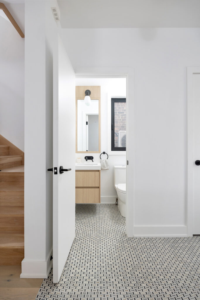 Given the home’s previous purpose as a boarding house, each floor was highly compartmentalized. They needed to remove all non-load-bearing interior walls and gut the entire structure on all three levels. Although a daunting prospect, this large-scale demolition provided them with a clean canvas to completely reimagine the space for the clients in terms of functionality as well as cohesive design aesthetic from floor to floor.